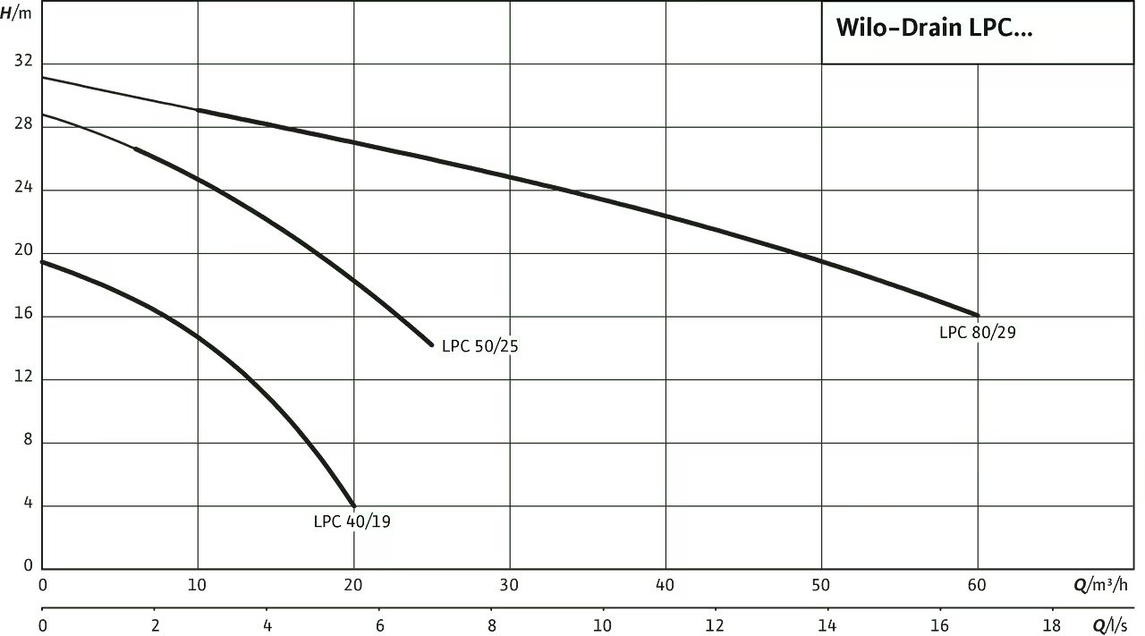 Wilo Drain LPC 80/29 Kendinden Emişli Drenaj Pompası Eğrisi