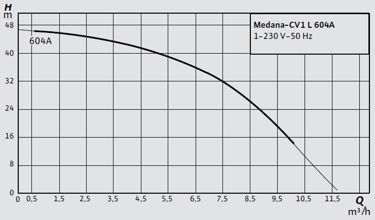 Wilo Medana CV1-L.604-1/E/A/10O Dikey Çok Kademeli Santrifüj Pompa Model ve Eğrisi