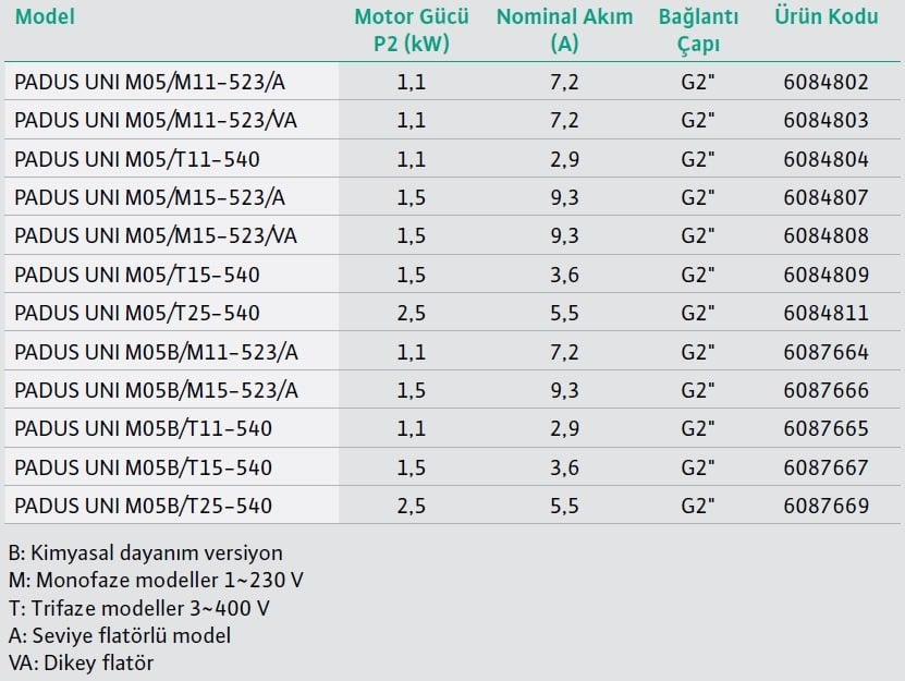 Wilo PADUS UNI M05/M15-523/VA Monofaze Az Kirli Sular için Dalgıç Pompa Özellikleri ve Teknik Bilgileri