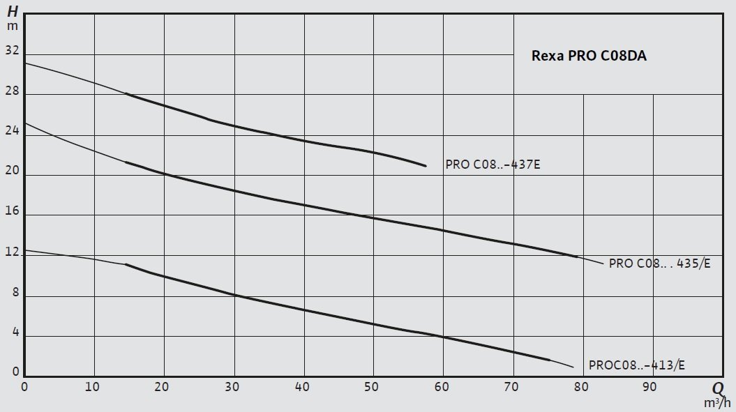Wilo Rexa PRO C08DA-435 DN80 Atık Su Dalgıç Pompa Modelleri ve Eğrisi