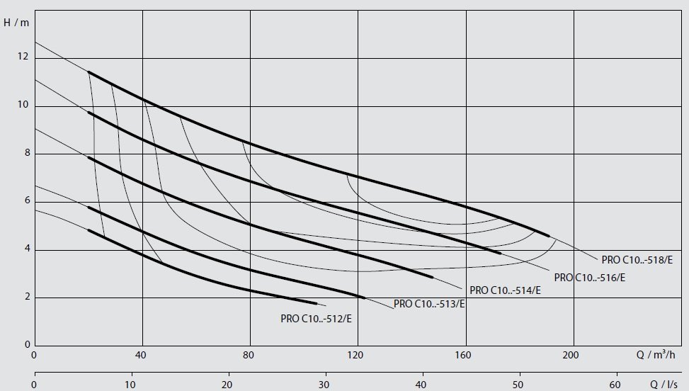 Wilo Rexa PRO C10DA-516 DN100 Atık Su Dalgıç Pompa Modelleri ve Eğrisi