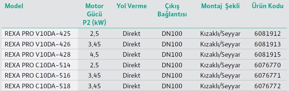 Wilo Rexa PRO C10DA-516 3,45 kW DN100 Atık Su Dalgıç Pompa Özellikleri ve Teknik Bilgileri