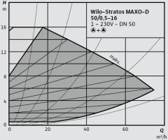 Wilo Stratos MAXO-D 50/0,5-16 PN6/10-R7 Frekans Konvertörlü İkiz Sirkülasyon Pompası Model ve Eğrisi