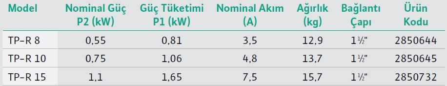 Wilo TP-R 15 Kirli Su ve Foseptik için Monofaze Dalgıç Pompa Modelleri ve Eğrisi